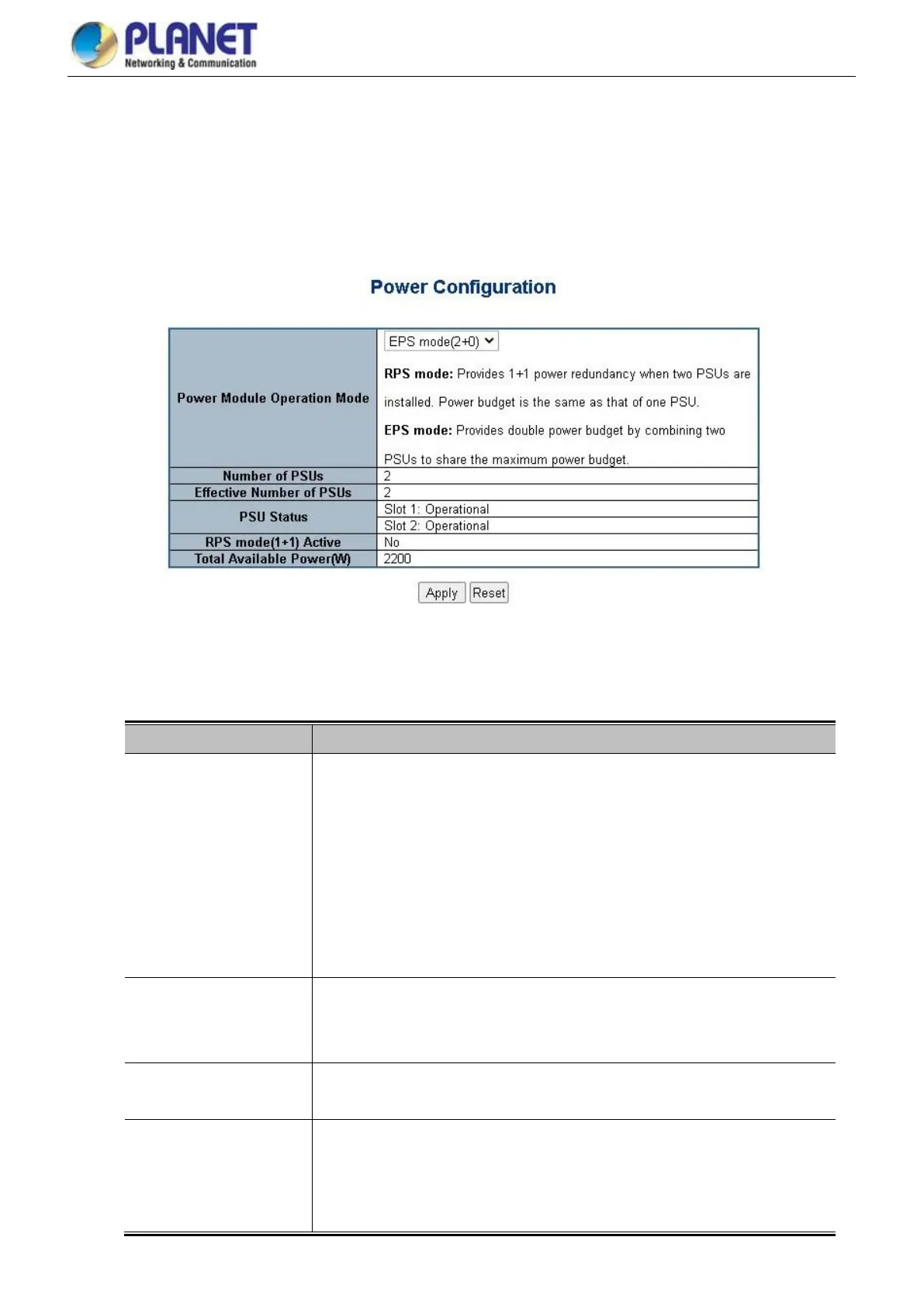The Managed Switch allows users to configure power module operation mode via
