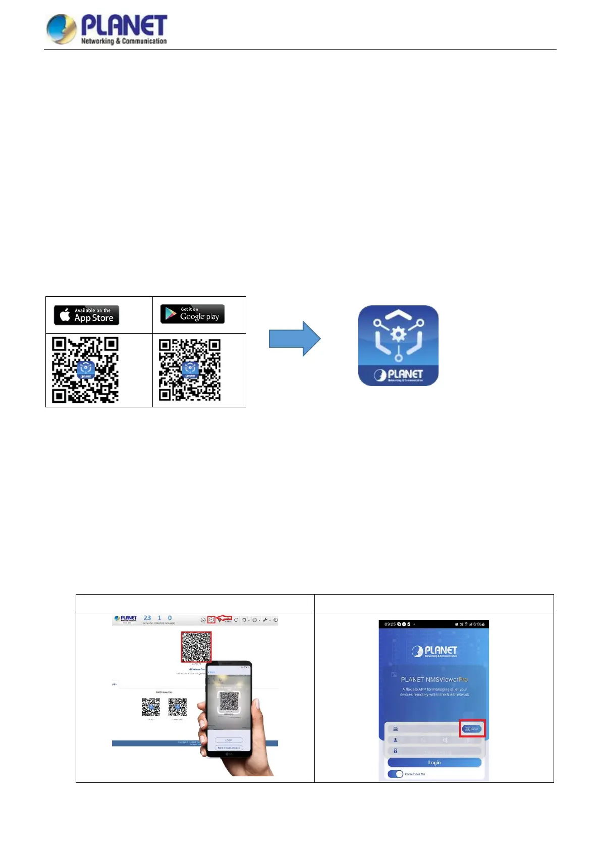 Get the PLANET NMSViewerPro App from the Apple App Store or Google play, or simply scan the QR code.