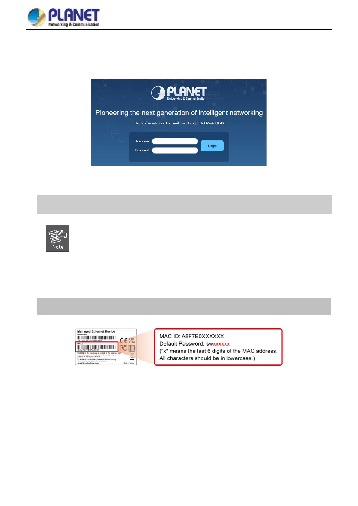 Default Password: sw + the last 6 characters of the MAC ID in lowercase