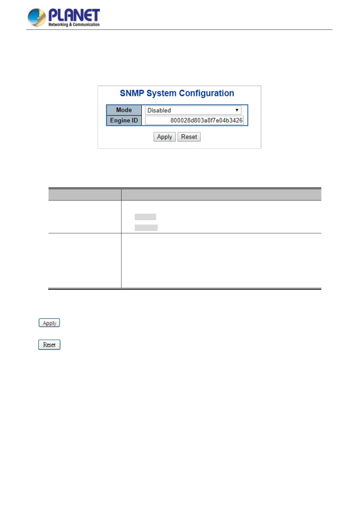 ◼ Disabled: Disable SNMP mode operation.