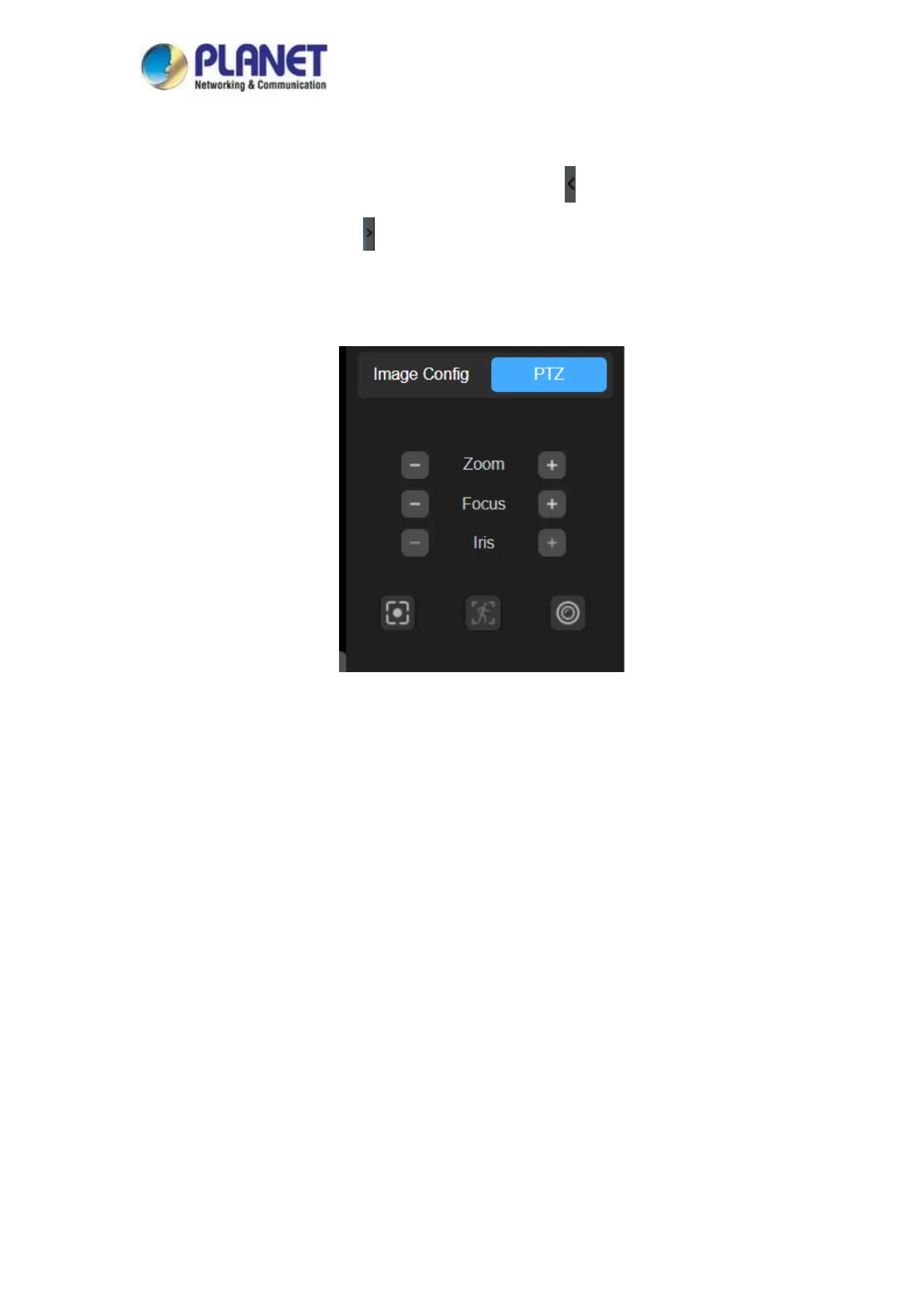 PTZ function is for ICA-M3580P and ICA-M4580P only. Click " " on the right side of the window to