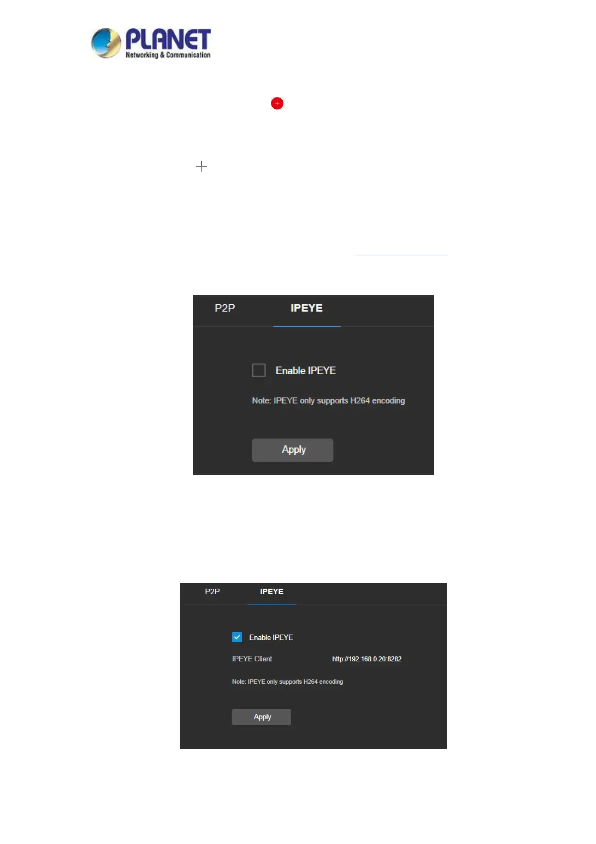 is enabled, you can add the device to the IPEYE account at https://www.ipeye.ru/ View IP Camera
