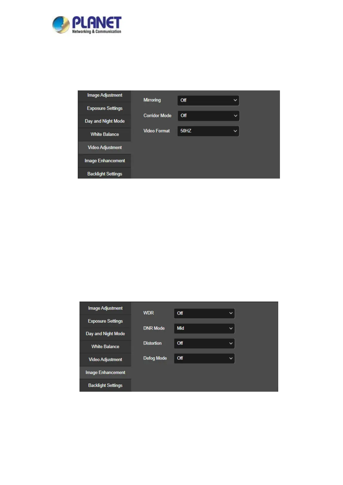 【Image Enhancement】Here you can turn on and set wide dynamic, digital noise reduction,