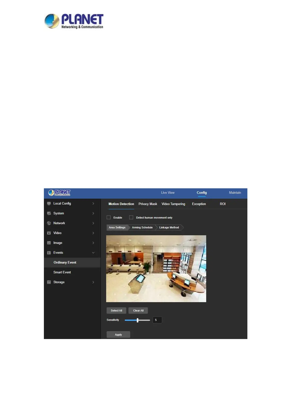In the Ordinary event interface, you can set the device's Motion Detection, Privacy Mask,