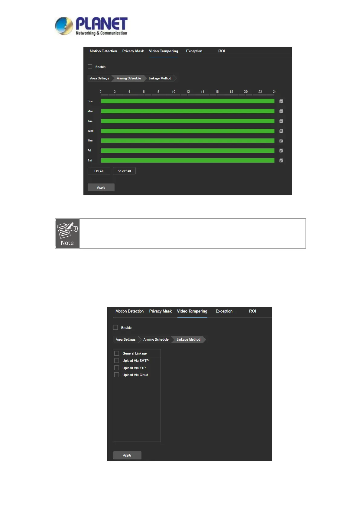 General linkage includes "Upload Via SMTP", "Upload Via FTP", "Upload Via Cloud". When the