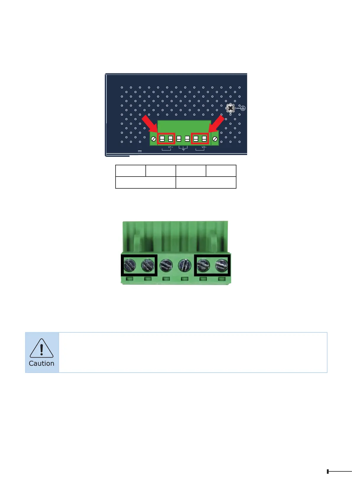 1. Insert positive and negative DC power wires into contacts 1 and 2 for POWER 1,
