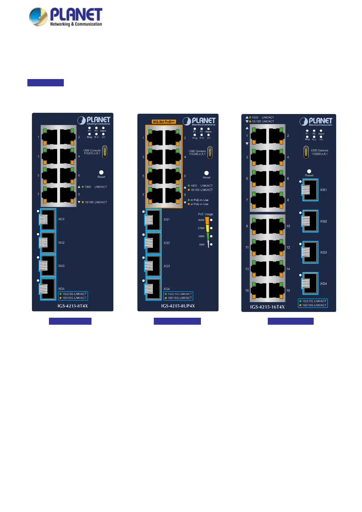 The front panel provides a simple interface monitoring of the Industrial Managed Switch. Figure 2-1-2 shows the front panels of