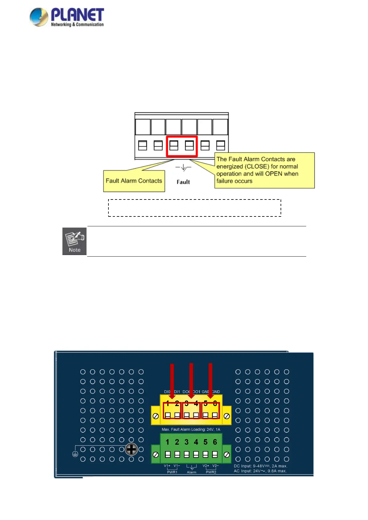 1. The IGS-4215 series offers two DI and DO groups. 1 and 2 are DI groups; 3 and 4 are DO groups; and 5 and 6 are GND
