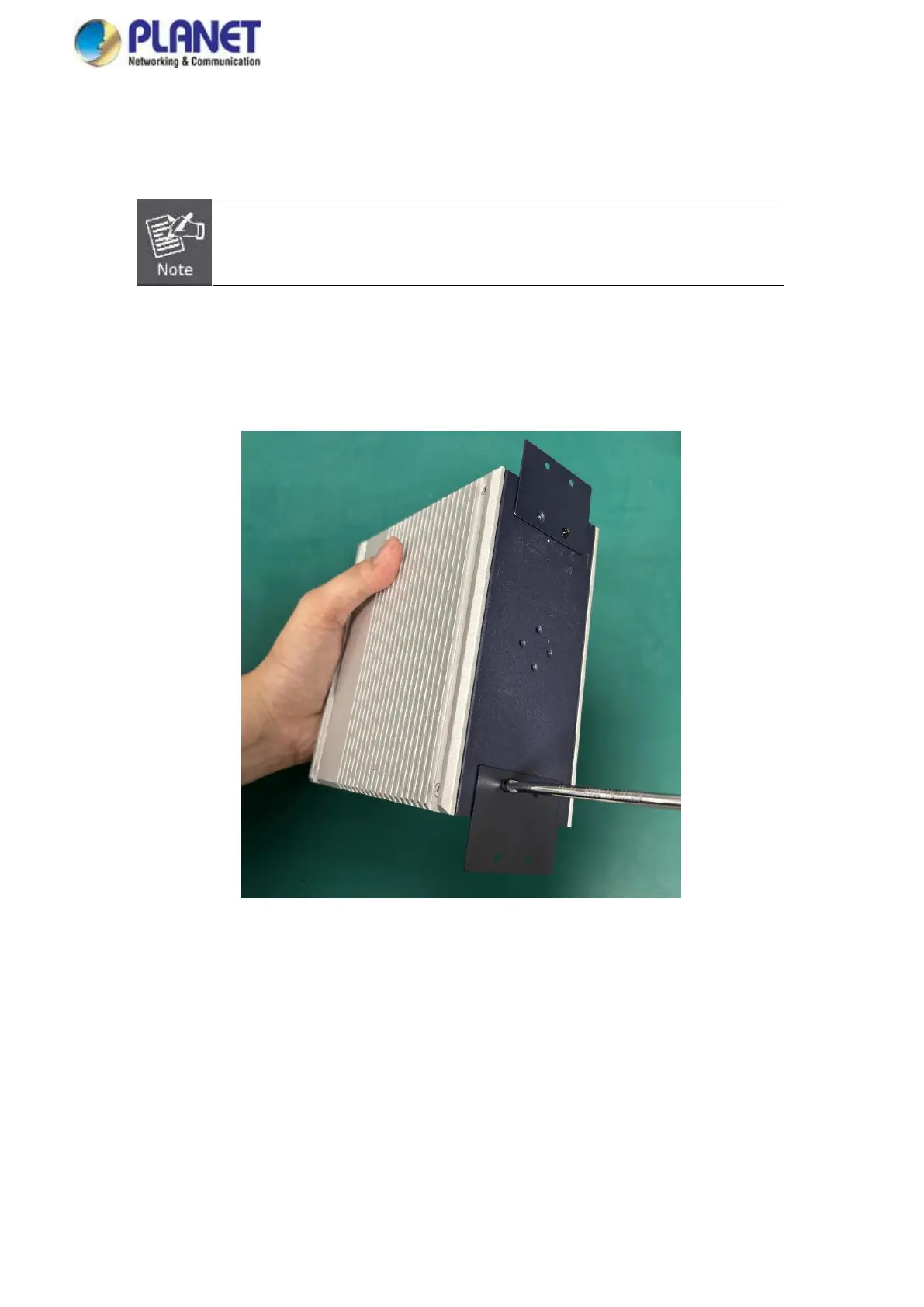 Step 1: Remove the DIN rail from the Industrial Managed Switch. Use the screwdriver to loosen the screws to remove the DIN