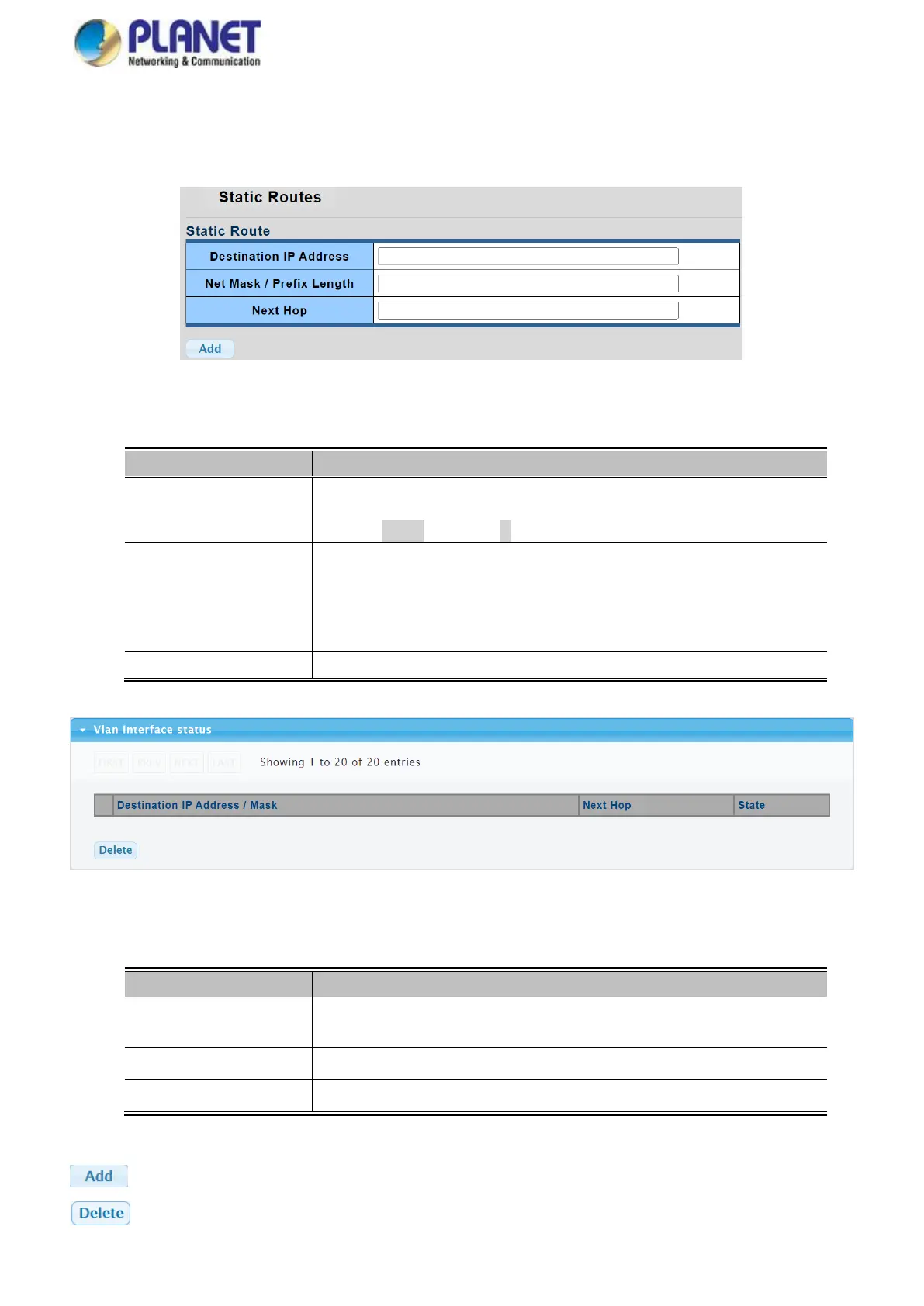: Click to add a new IP route. A maximum of 32 routes are supported.