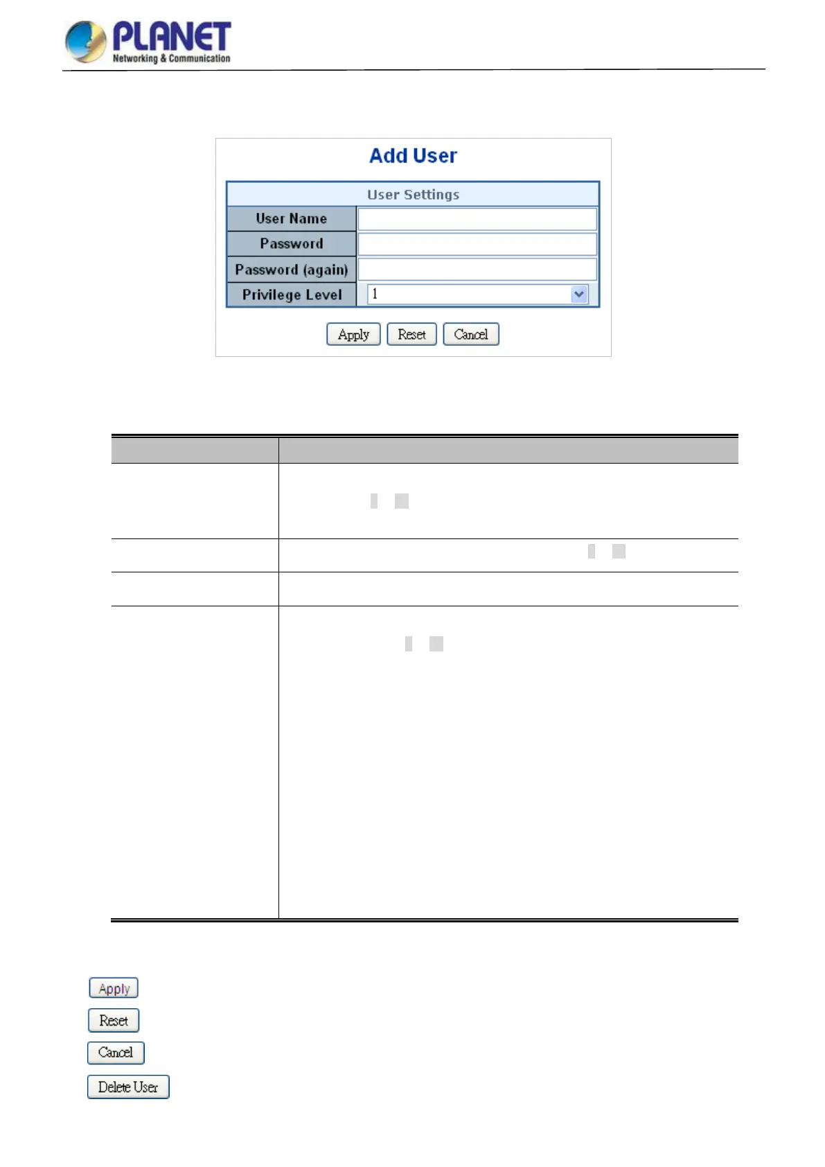 Figure 4-2-5: Add / Edit User Configuration Page Screenshot