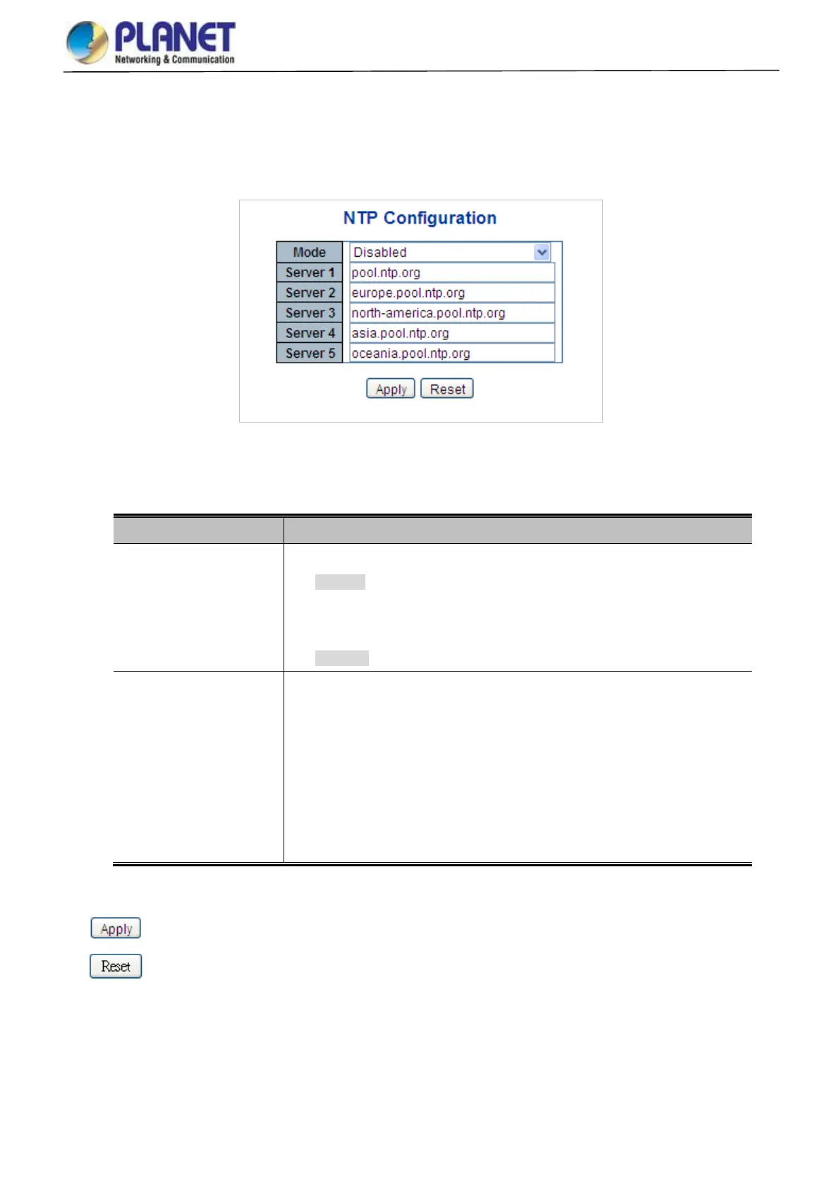 Enabled: Enable NTP mode operation. When enabling NTP mode