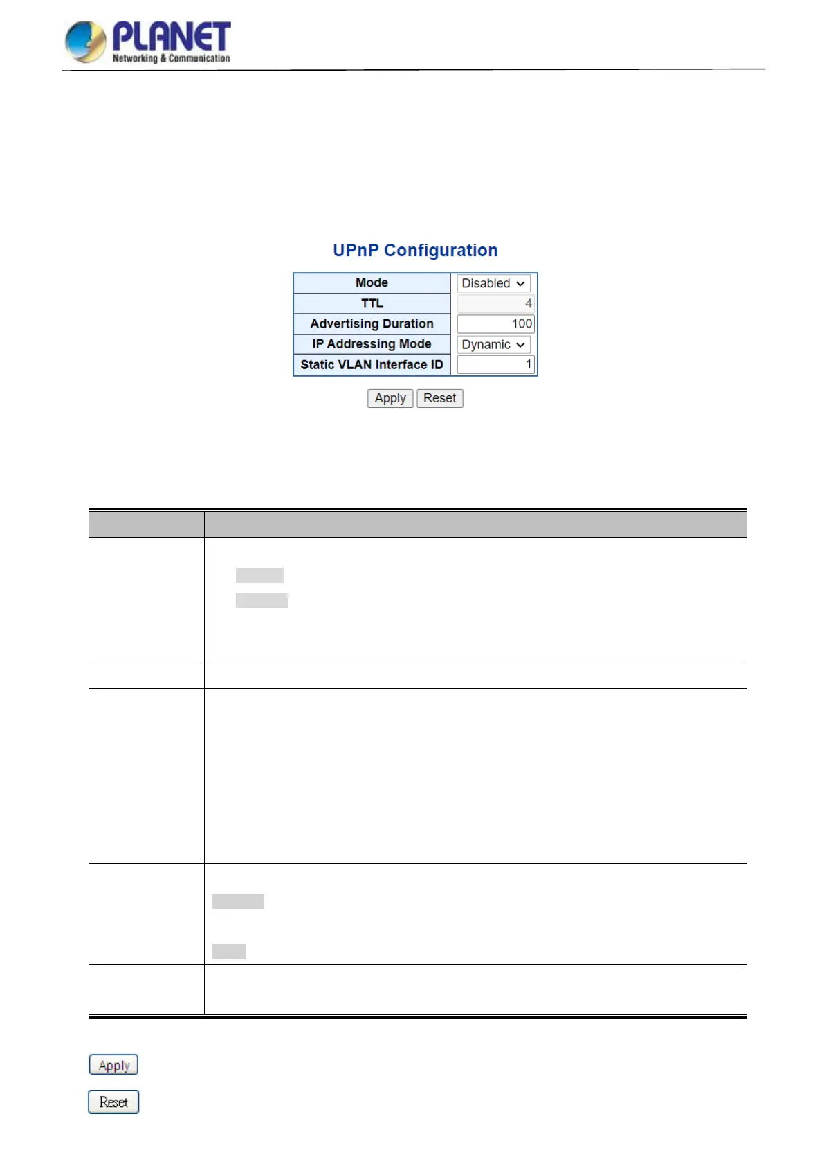 Dynamic: Default selection for UPnP. UPnP module helps users choosing the IP address of the
