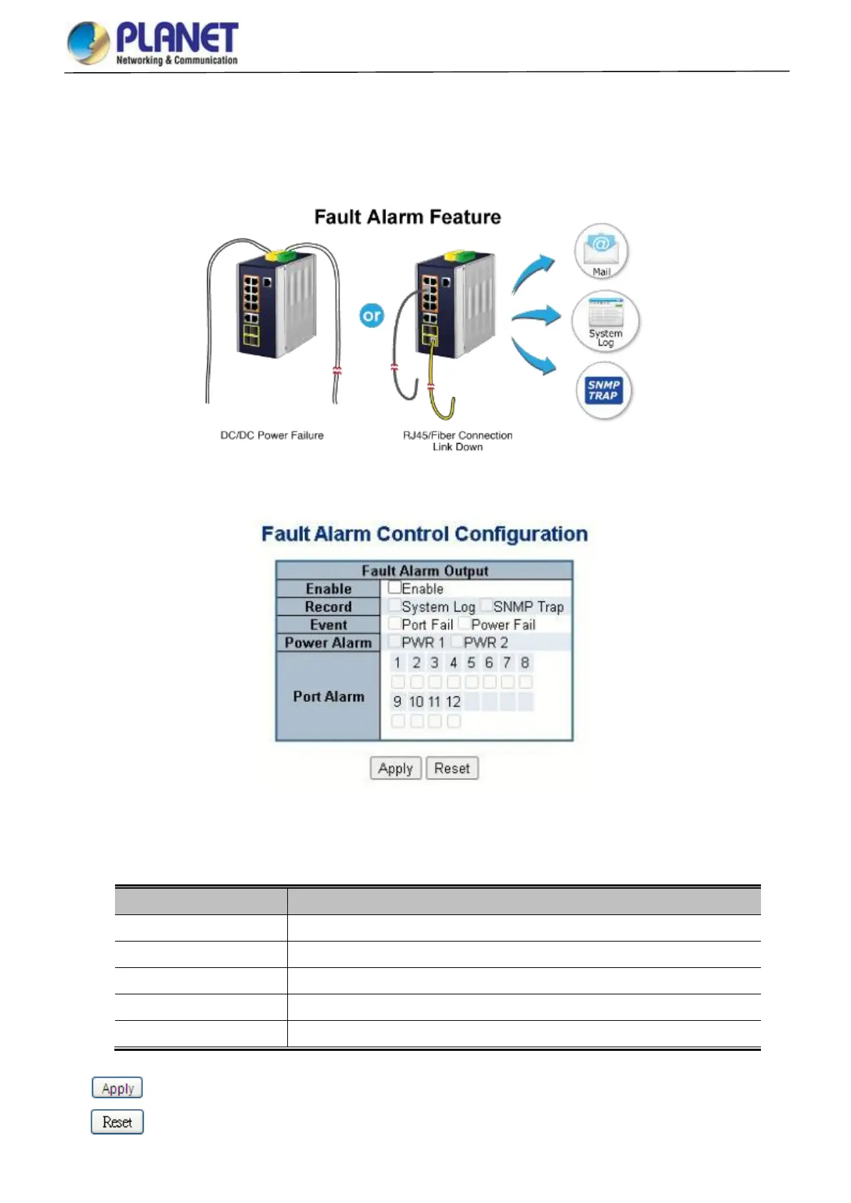 The Industrial Managed Switch supports a Fault Alarm feature which can alert the users when there is something wrong with