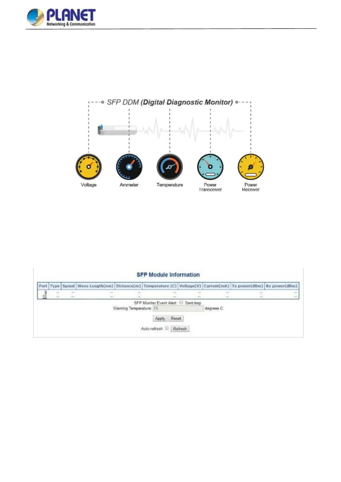 The Industrial Managed Switches have supported the SFP module with digital diagnostics monitoring (DDM) function.