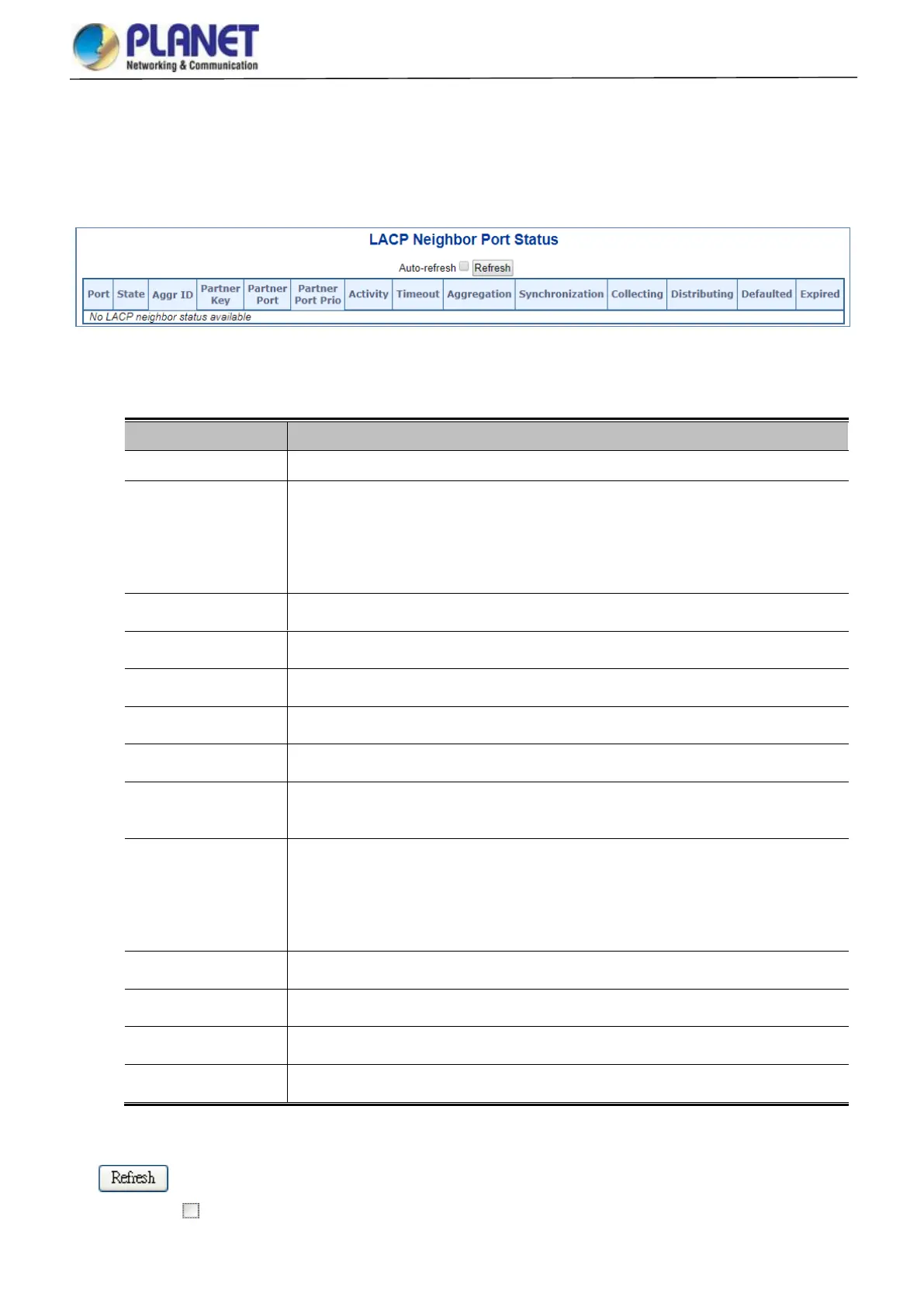 Figure 4-3-2-9: LACP Neighbor Port Status Page Screenshot