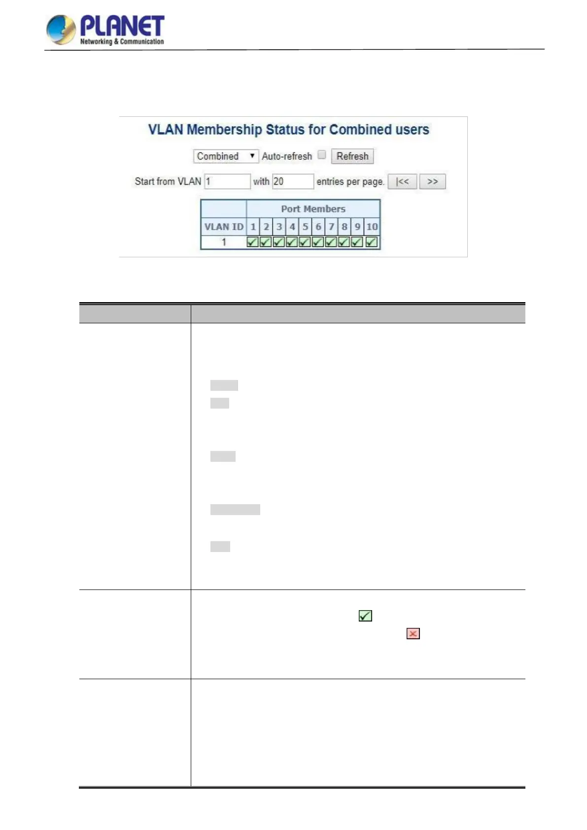 Figure 4-3-3-3: VLAN Membership Status for Static User Page Screenshot