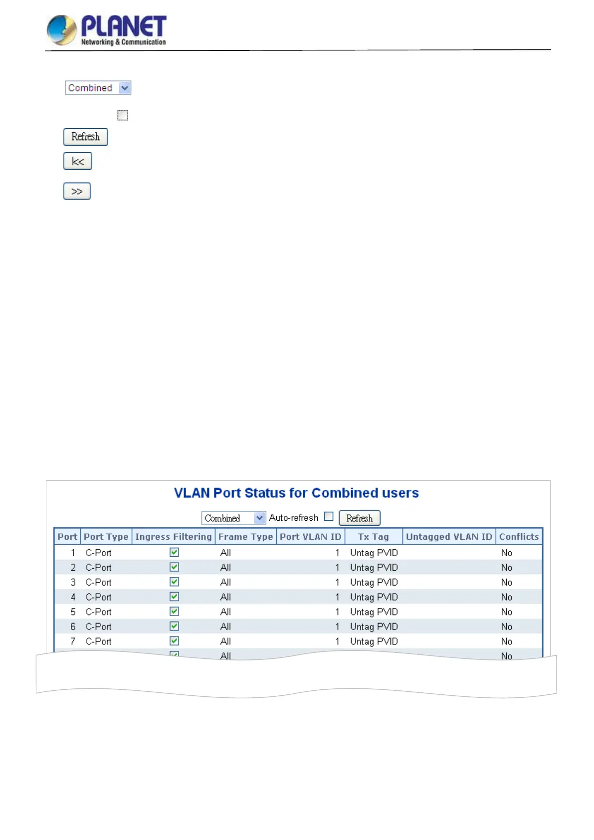 Figure 4-3-3-4: VLAN Port Status for Combined users Page Screenshot