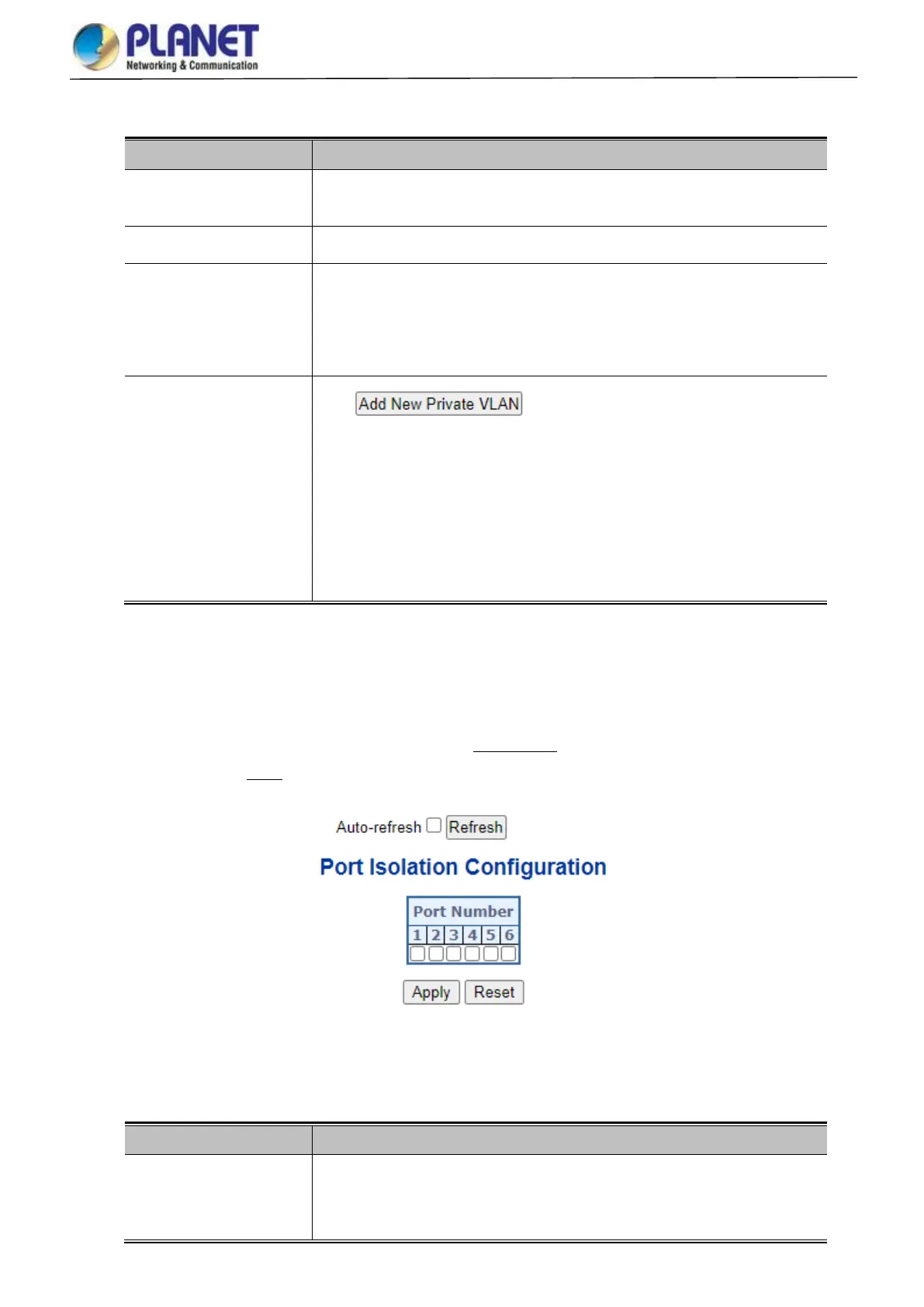 This page is used to enable or disable port isolation on ports in a Private VLAN.