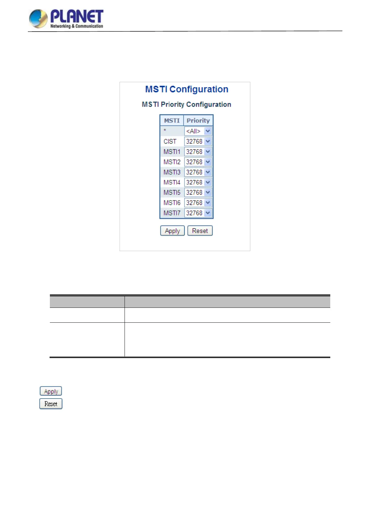 as well. The MSTI Priority screen in Figure 4-3-9-7 appears.