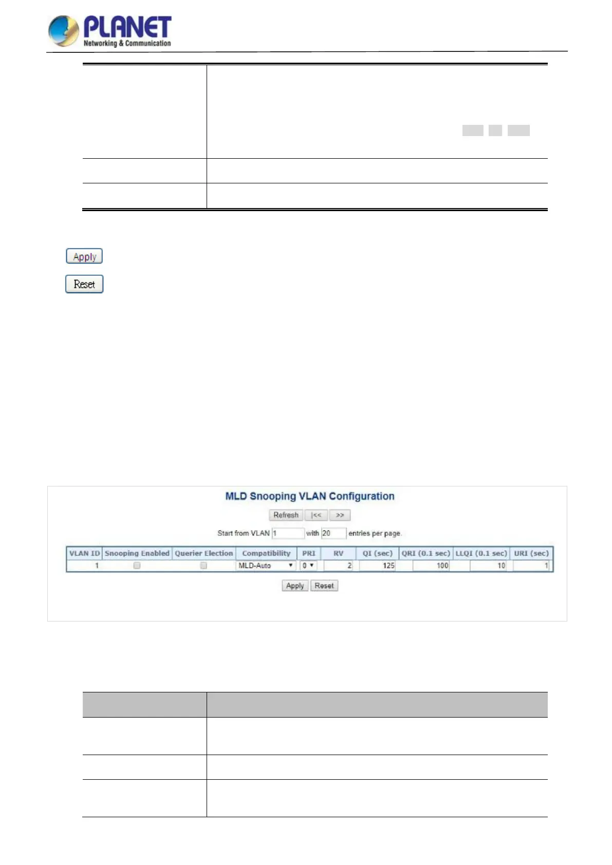 The "VLAN" input fields allow the user to select the starting point in the VLAN Table. The MLD Snooping VLAN Configuration