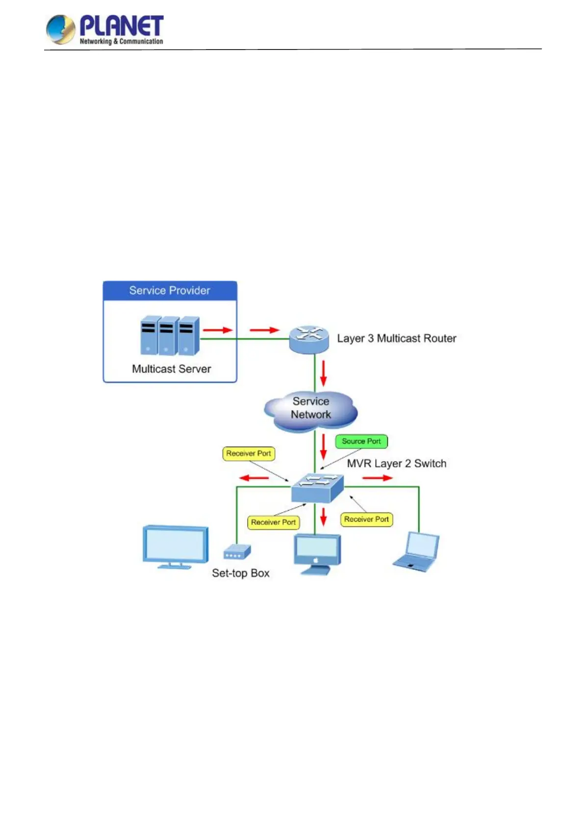■ Uplink ports that send and receive multicast data to and from the multicast VLAN are called MVR source ports.