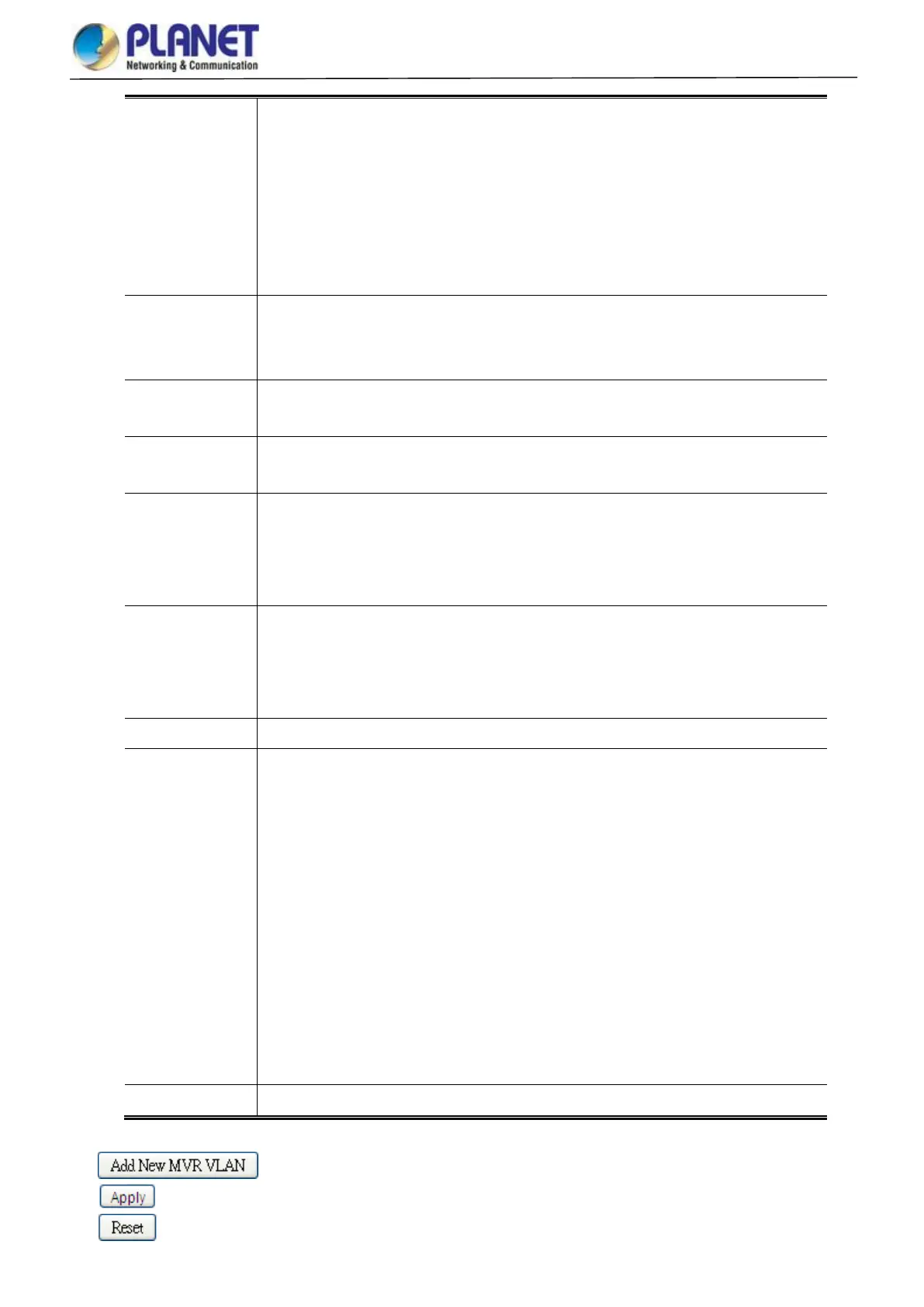 : Click to add new MVR VLAN. Specify the VID and configure the new entry. Click "Save"