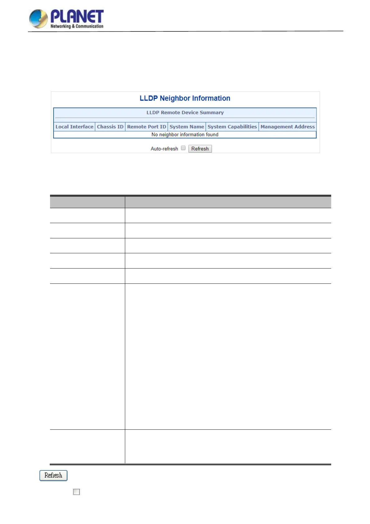 Figure 4-3-13-2: LLDP Neighbor Information Page Screenshot