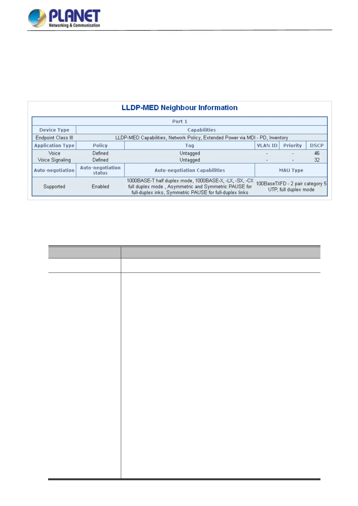 an LLDP neighbor is detected. The LLDP-MED Neighbor Information screen in Figure 4-3-13-4 appears. The columns hold the