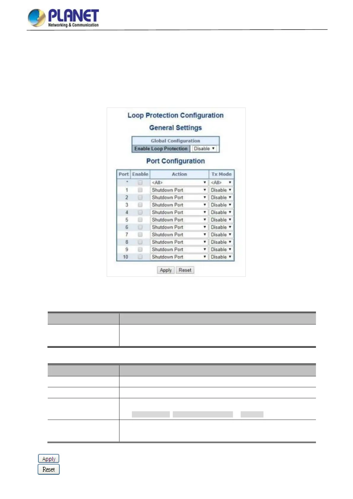 Figure 4-3-15-1: Loop Protection Configuration Page Screenshot