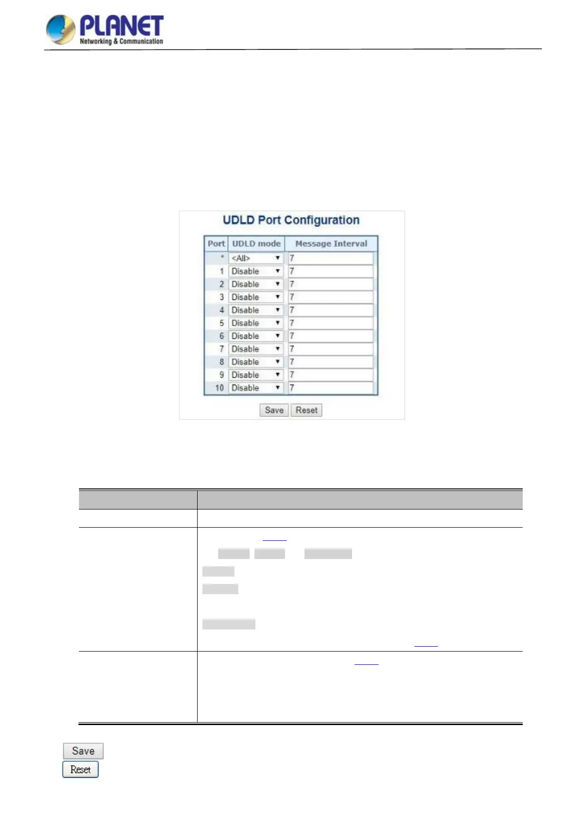 This page allows the user to inspect the current UDLDconfigurations, and possibly change them as well. as screen in Figure 4-
