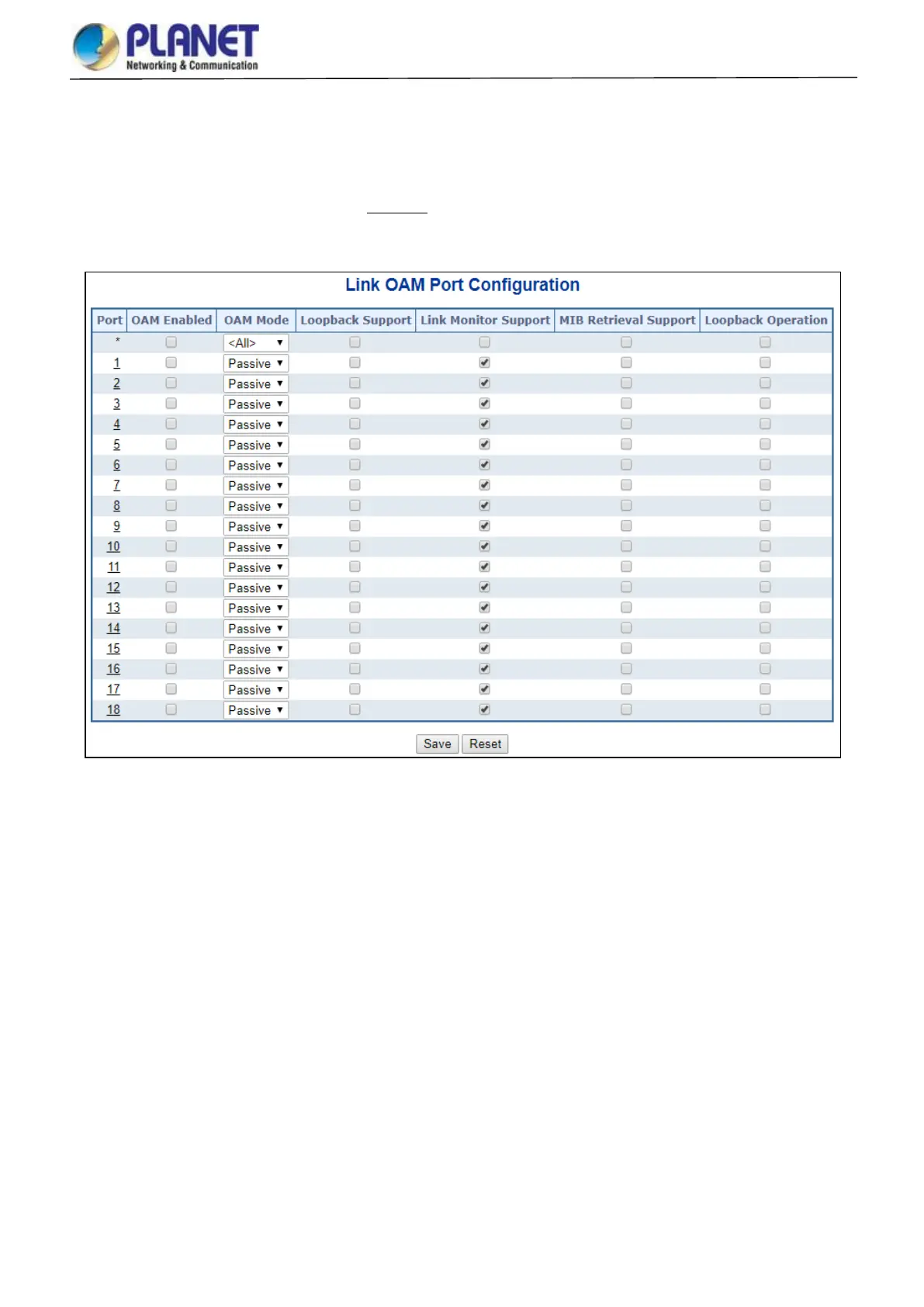 This page allows the user to inspect the current Link OAM port configurations, and change them as well, as screen in Figure 4-