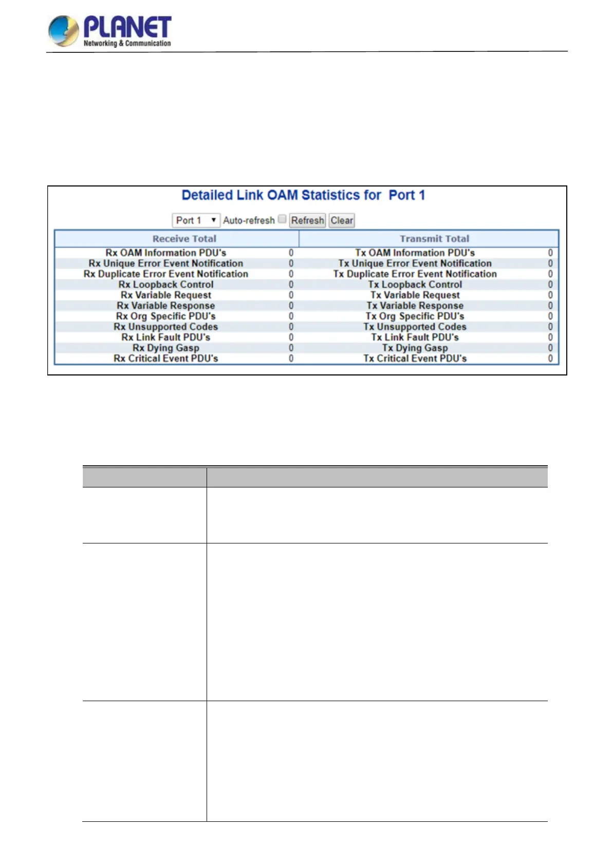 Figure 4-3-17-3: Link OAM Statistic Page Screenshot