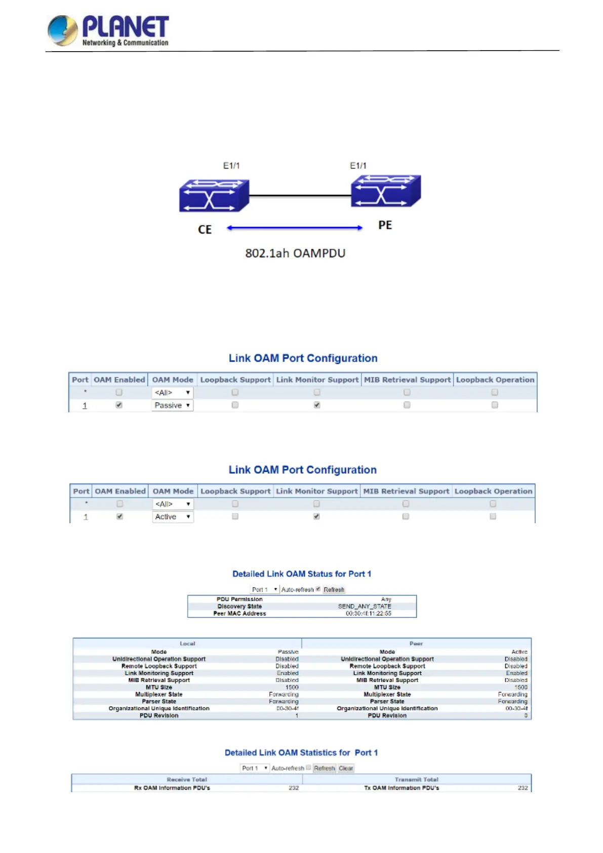 CE and PE devices with point-to-point link enable EFM OAM to monitor “the First Mile” link performance. It will report the log