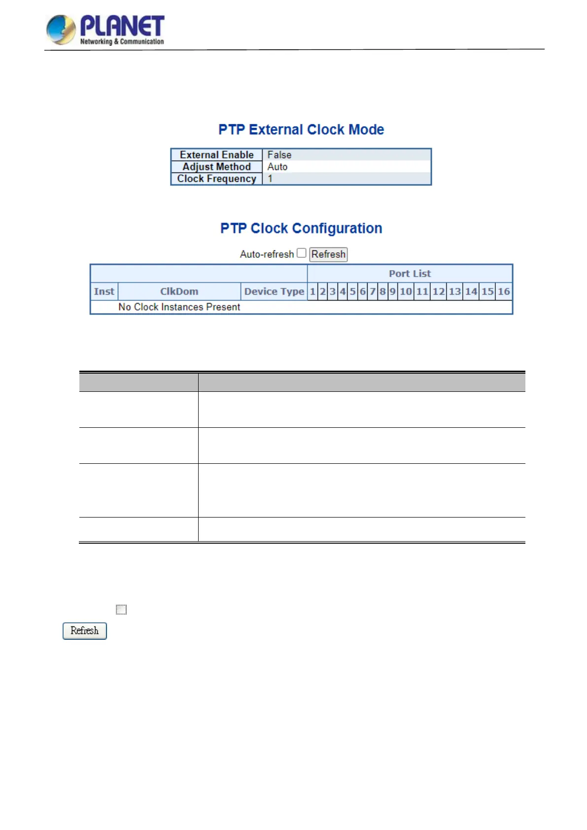 This page allows the user to inspect the current PTP clock settings in Figure 4-3-20-2 appears.