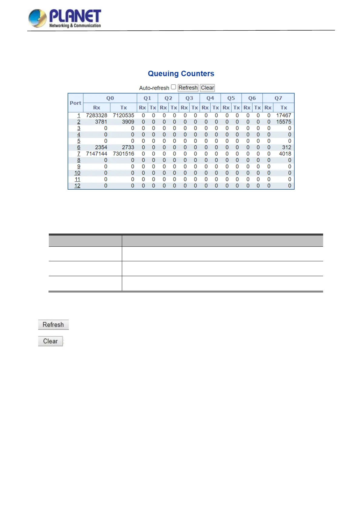 This page provides statistics for the different queues for all switch ports. The statistics screen in Figure 4-4-1-5 appears.