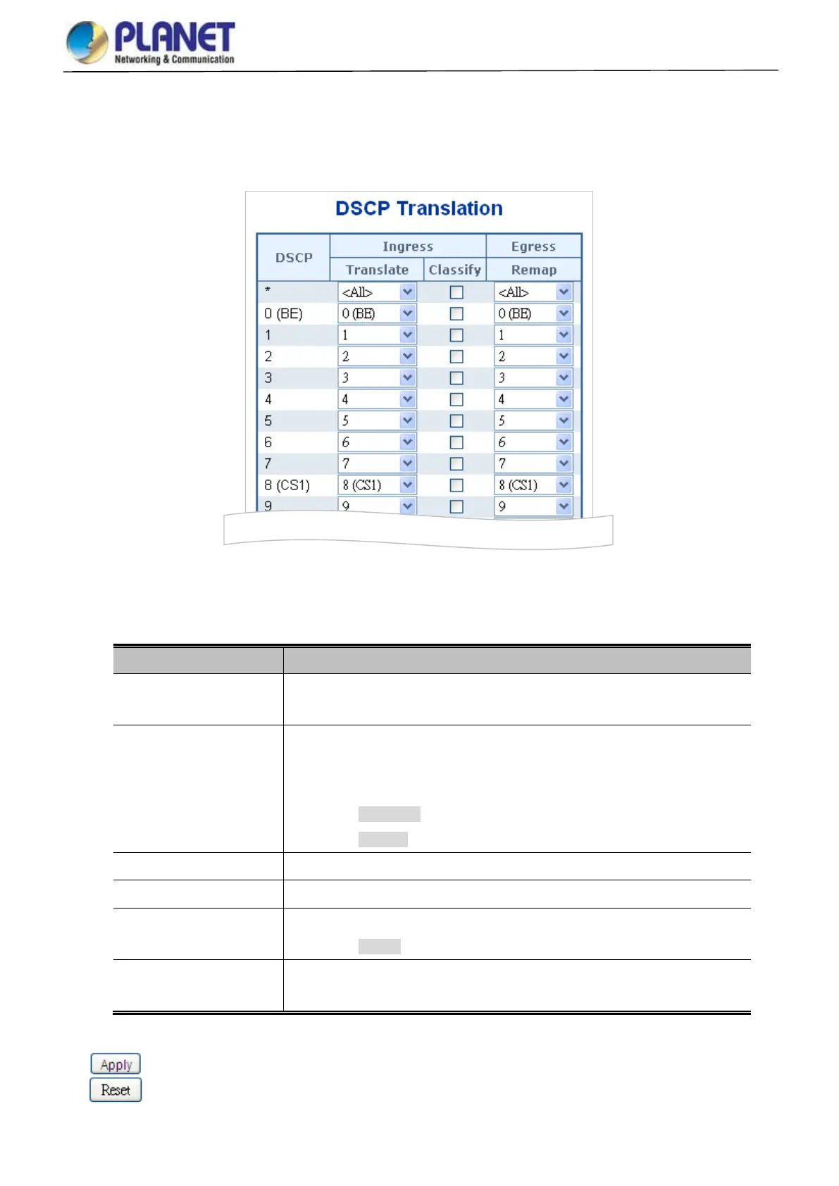 Figure 4-4-4-3: DSCP Translation Page Screenshot