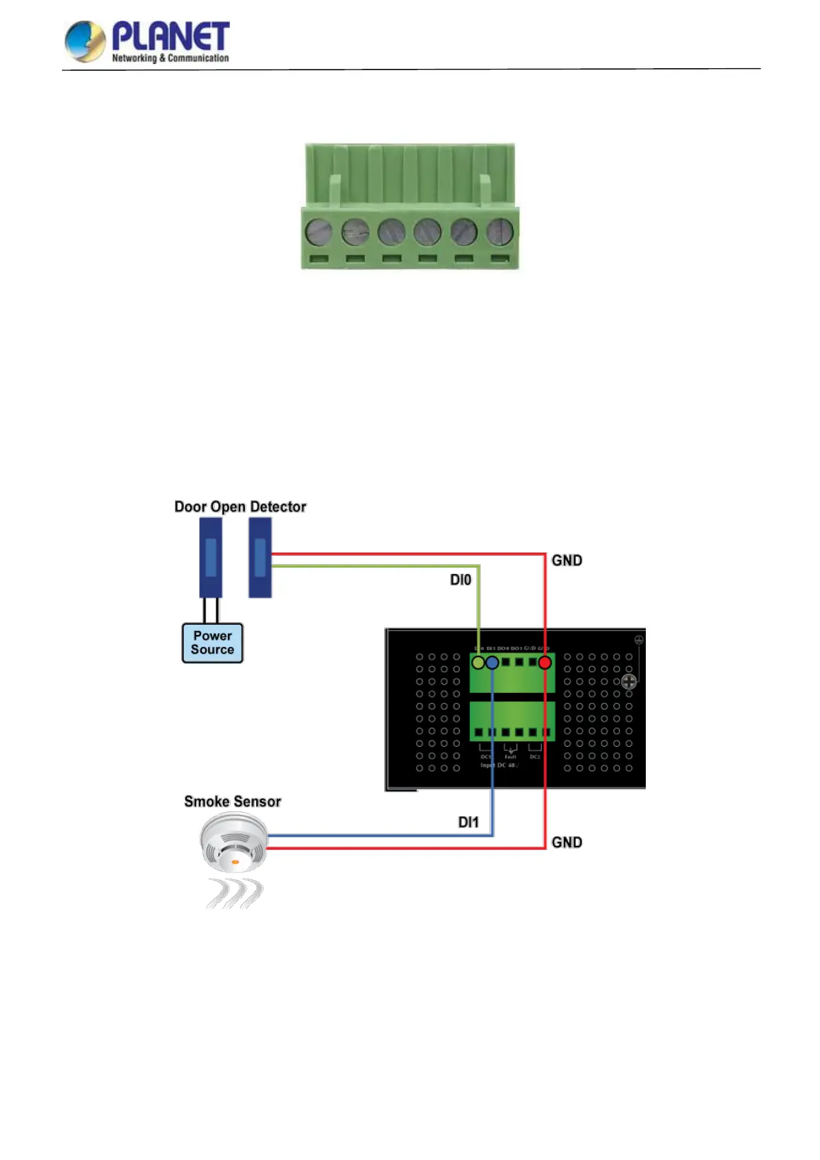3. There are two Digital Input groups for you to monitor two different devices. The following topology shows how to wire DI0