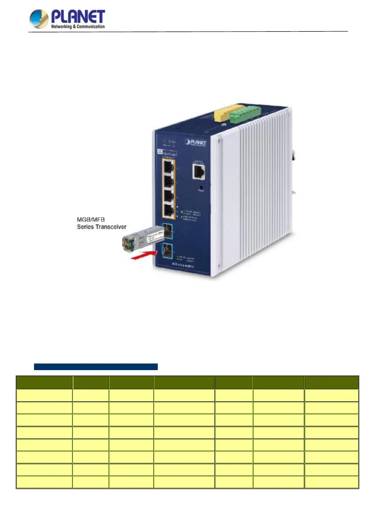 PLANET Industrial Managed PoE+ Switch supports both single mode and multi-mode SFP transceivers. The following