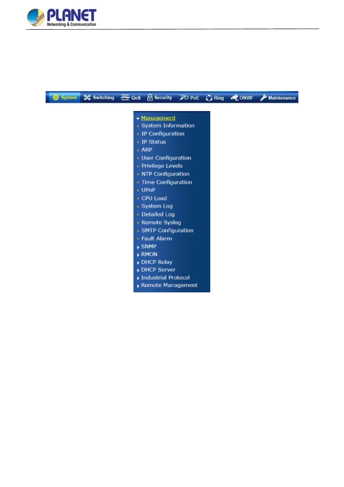 Figure 4-1-5: Industrial Managed Switch Main Functions Menu