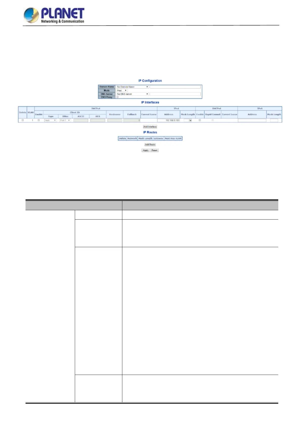 The IP Configuration includes the IP Configuration, IP Interface and IP Routes. The configured column is used to view or