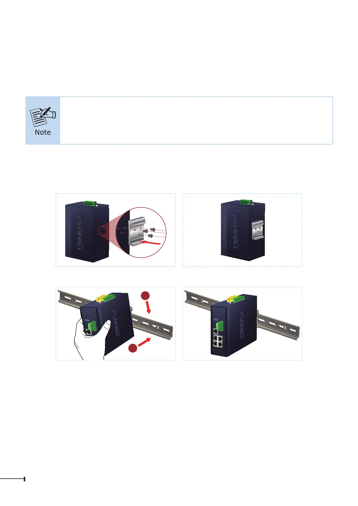2. AlignthebracketwiththeDINrailandslidethedeviceintoplaceuntilitisrmly