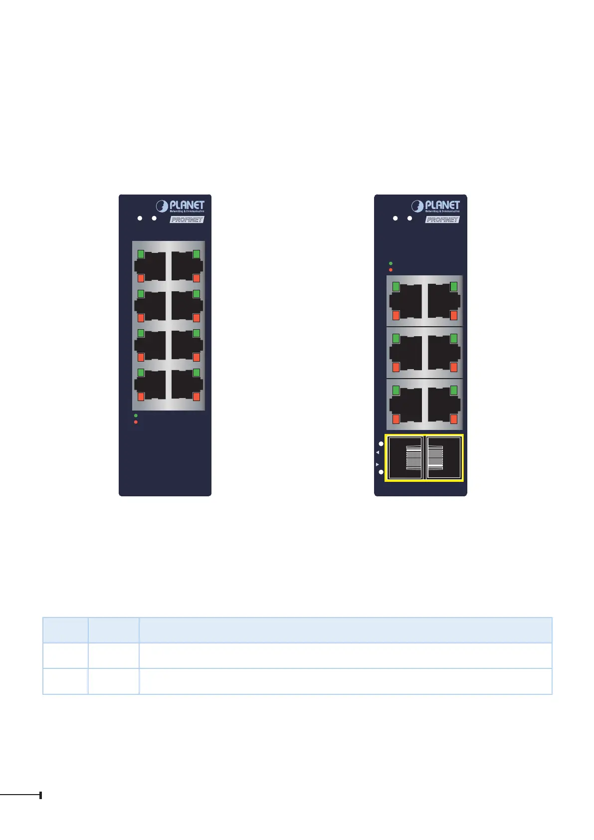 The front panels of the Industrial Gigabit PROFINET Switches consist of Ethernet