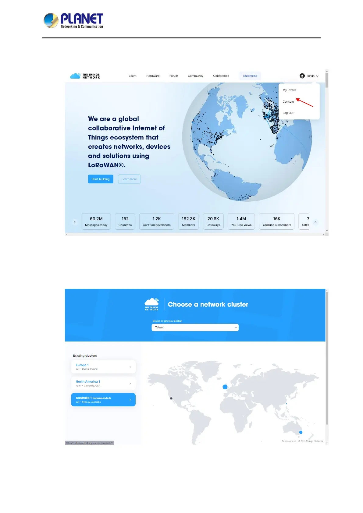 a. After logging in, select “console” under “account” shown in the upper right corner of the
