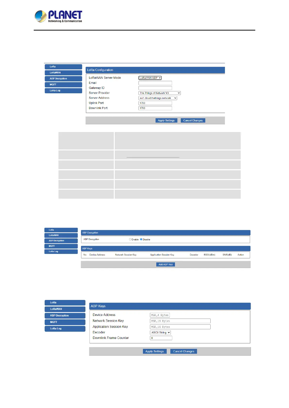 b. Click the Add ABP Key button. Then input data which has to be the same as the settings