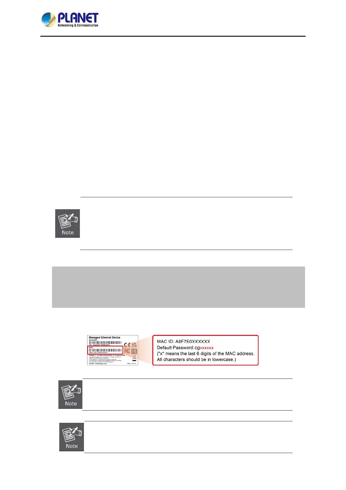 Find the MAC ID on your device label. The default password is "cg" followed by the last six