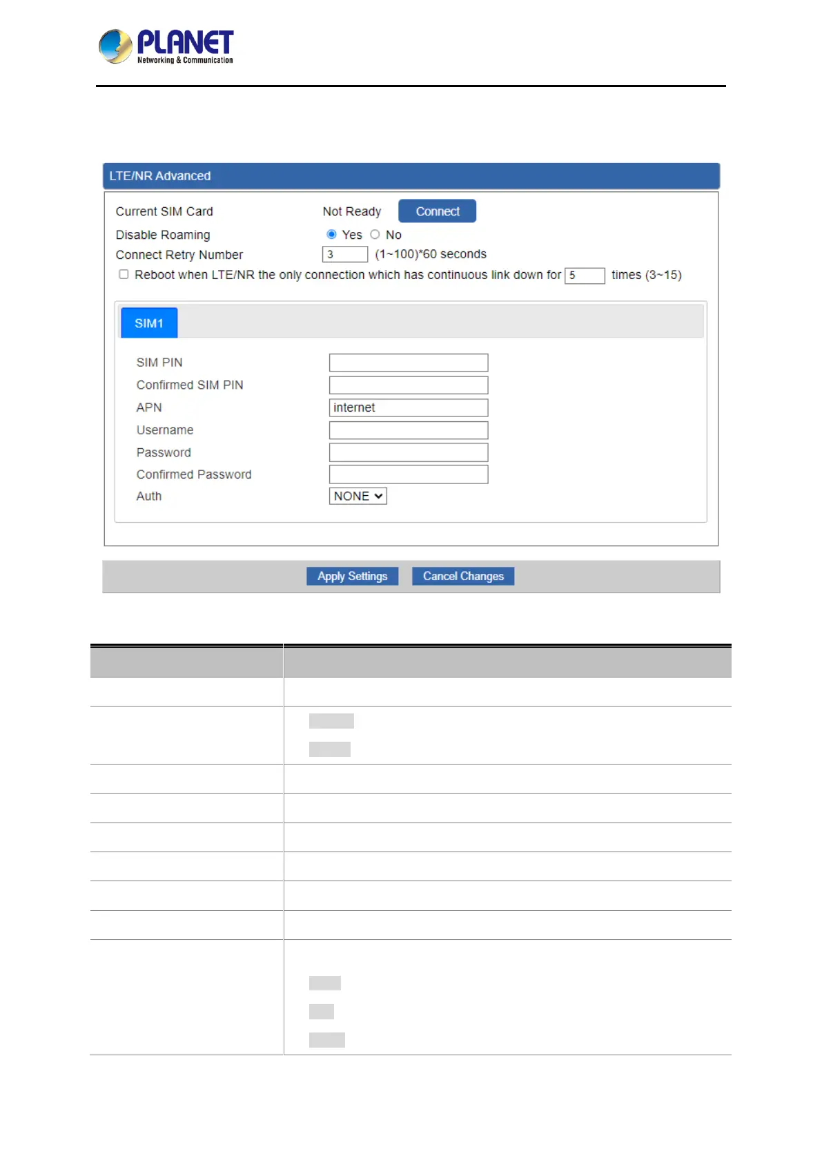 This page provides LTE/NR advanced configuration as shown in Figure 4-6-3.