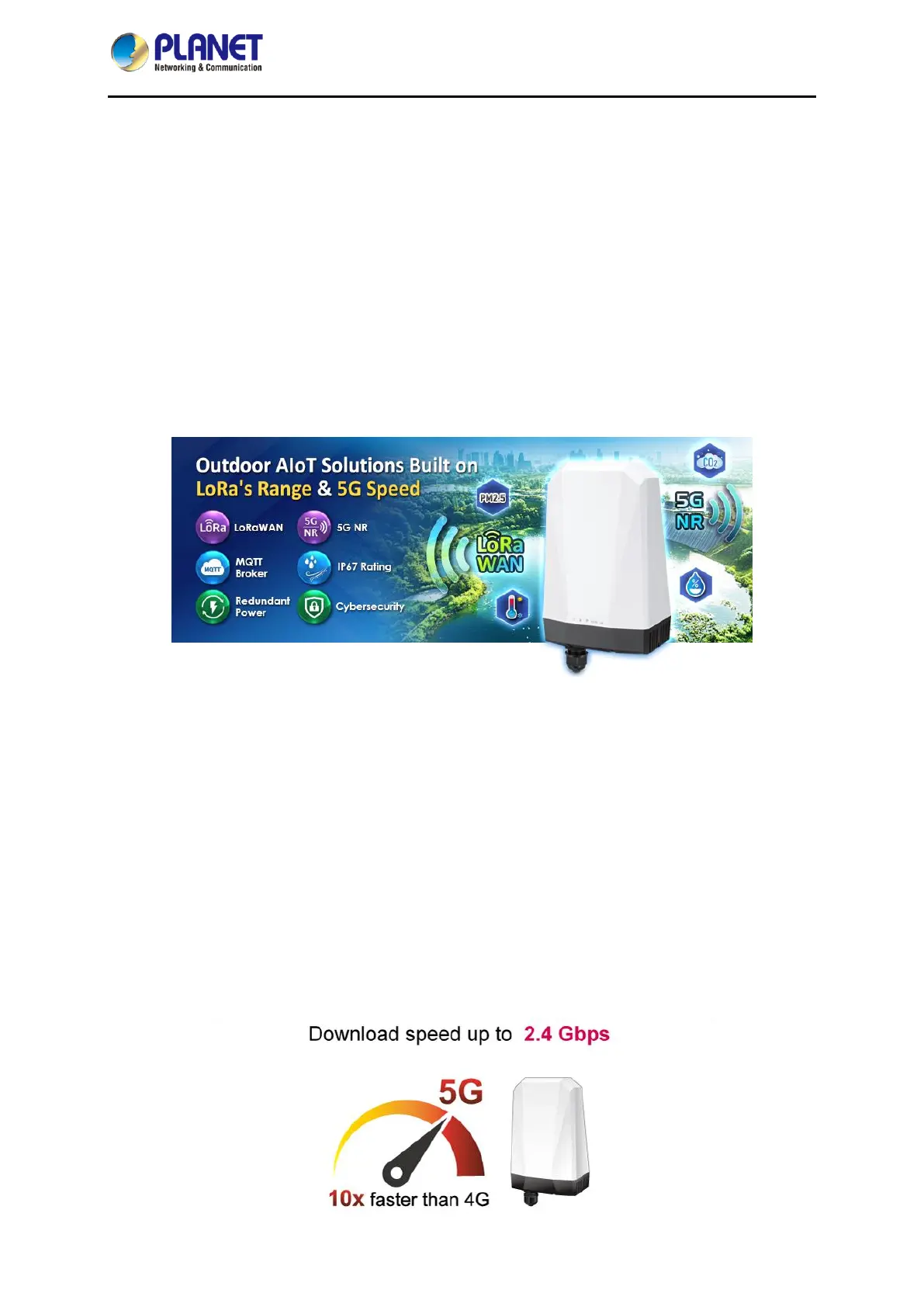 PLANET LCG-350W-NR is an Industrial-grade Outdoor 5G NR Cellular LoRaWAN Gateway with