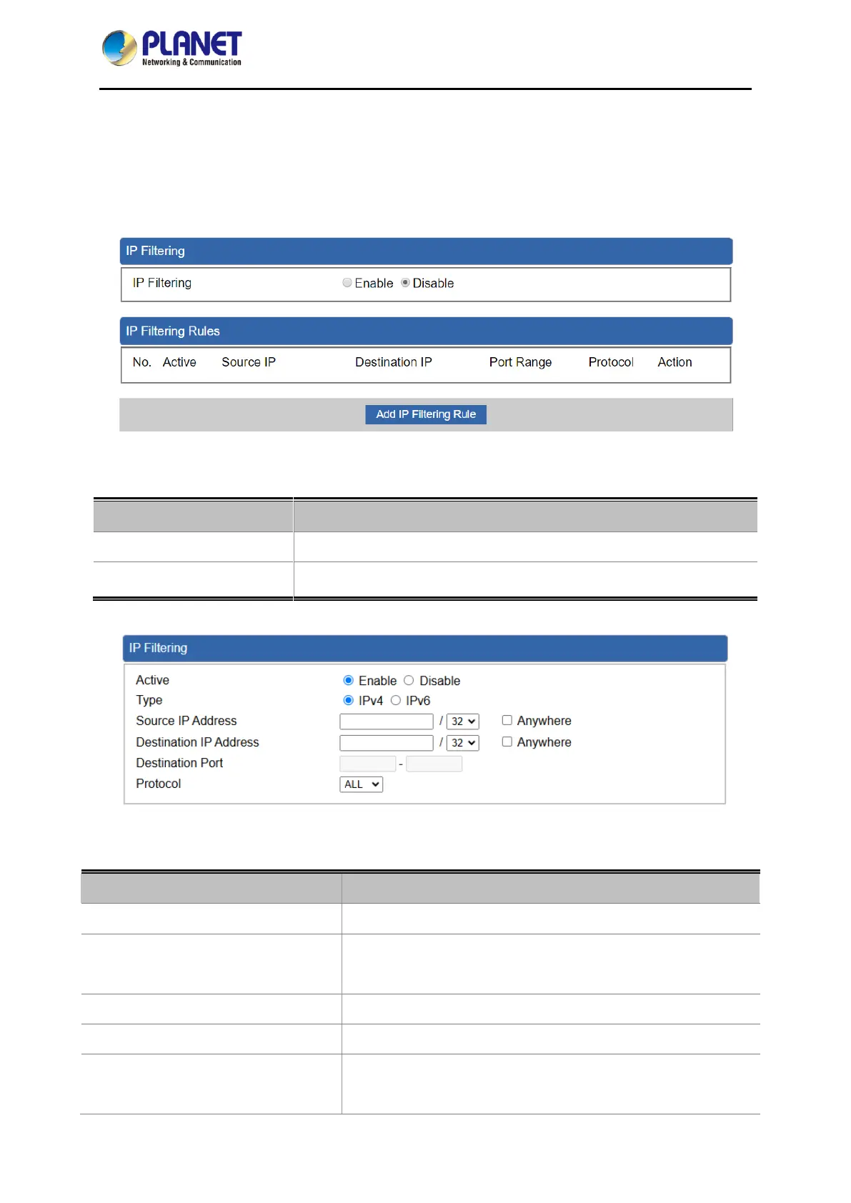 Figure 4-8-4. To begin blocking access to an IP address, enable IP Filtering and enter the IP address of