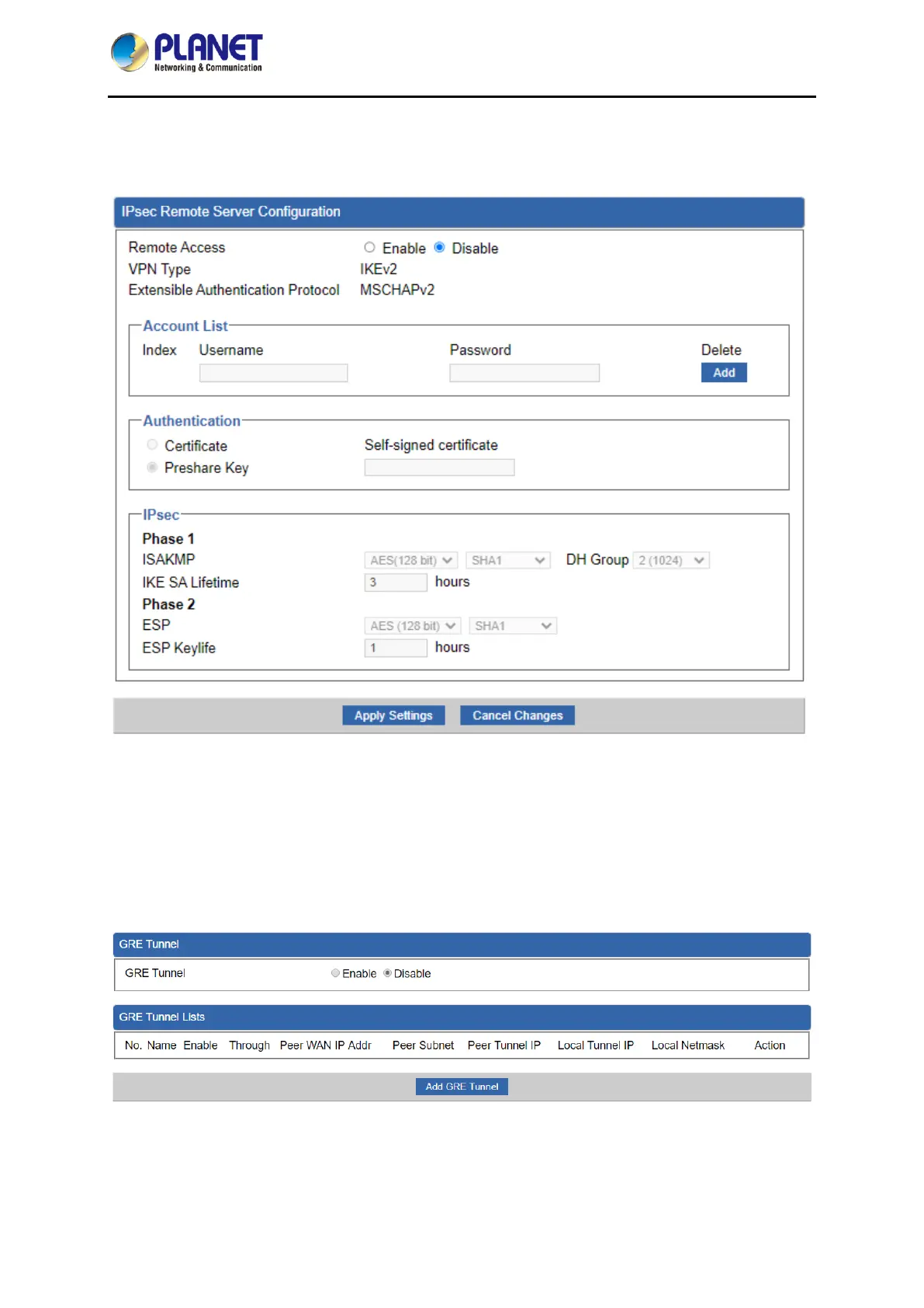 This section assists you in setting the IPsec Remote Server Configuration as shown below.